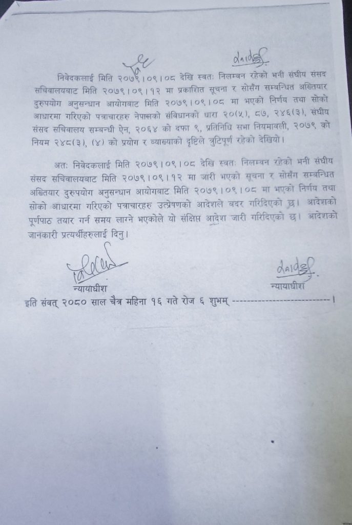 सर्वोच्च अदालतका न्यायाधीशद्वय मनोजकुमार शर्मा र विनोद शर्माको इजलासले सांसद गुरुङमाथि गरिएको निलम्बनको कारवाही त्रुटिपूर्ण रहेको भन्दै उत्प्रेषणको आदेशले बदर गरिदिएको हो ।