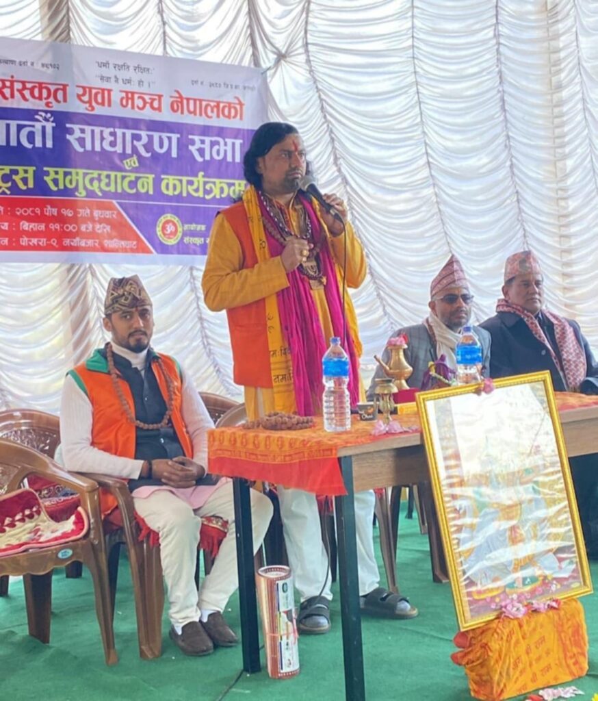 पोखरा । संस्कृत युवा मञ्च नेपालको सातौं साधारण सभा तथा सेतिगण्डकी साप्ताहिक दिव्य महाआरती स्थलमा नवनिर्मित ट्रस्टको उद्घाटन बुधवार एक कार्यक्रमका बीच पोखरामा सम्पन्न भएको छ ।