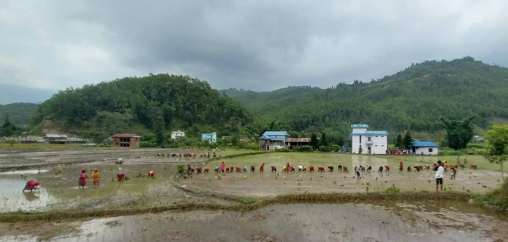 गुल्मीको सिस्तुङमा एकै दिन सय रोपनीमा धान रोपाइँ (तस्वीरहरु)