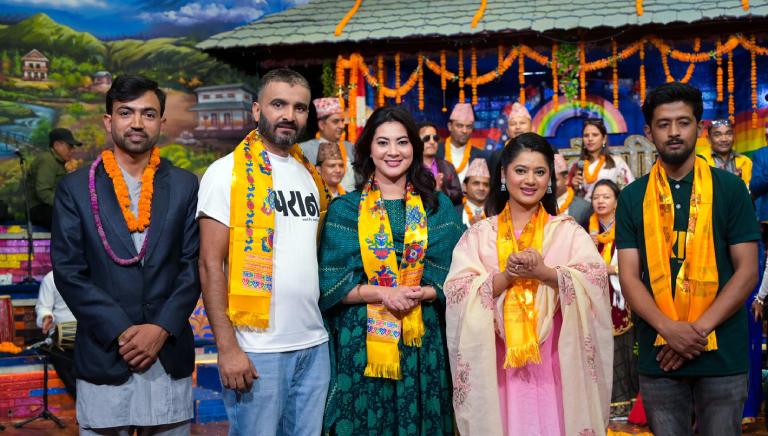 त्यसपछि नायिका केकी अधिकारीले तिहार गीत गाउँदै देउसी भट्याउँदा माहोल झन् रमाइलो बनेको थियो । अर्की नायिका अन्जना बराइलीले बाल्यकालका तिहारका रमाइला सम्झना बाँड्दै आफ्ना भाव व्यक्त गरिन् ।