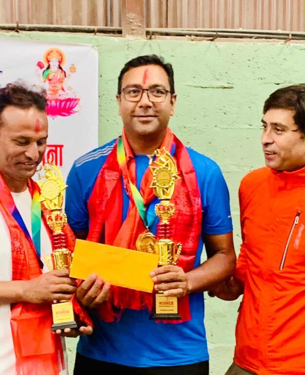 काठमाण्डौ महानगर पालिका वडा नं. ३२ र कागेश्वरी मनोहरा नगरपालीका वडा नं. ६,७,८,९ का व्याटमिन्टन खेलाडीहरुको सहभागिता रहेको फाईनल प्रतियोगितामा मेन्स डबल तर्फ दिनेश के. शी र अनुप घिमिरेको जोडीले उमेस धिताल र कुन्दन कडरियाको जोडीलाई तेस्रो सेटमा पराजित गरेका थिए । अत्यन्तै प्रतिश्प्रधात्मक रुपमा भएको खेलमा पहिलो सेट २३-२१ ले उमेश धिताल र कुन्दन कडरियाको टिमले जिते पनी दोस्रो र तेस्रो सेट क्रमश २१-१६ र २१ – १८ को नतिजाले दिनेश र अनुपको डोडीले जितेको हो ।