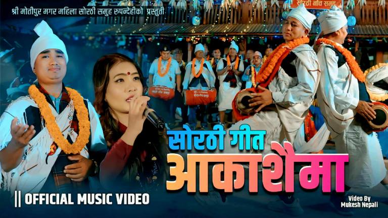 काठमाडौँ। तिहारको अवसर पारेर श्री मोतिपुर मगर महिला समूह रुपन्देहीले सोरठी भाकामा आधारित नयाँ गीत ‘आकाशैमा’ सार्वजनिक गरेको छ। गायक छ्बी रास्कोटी मगर र गायिका देबी घर्ती मगरको स्वरमा रहेको यो गीतले सोरठी संस्कृतिको मौलिकता, परम्परा र सामुदायिक भावनालाई जीवन्त राख्ने संदेश बोकेको छ।