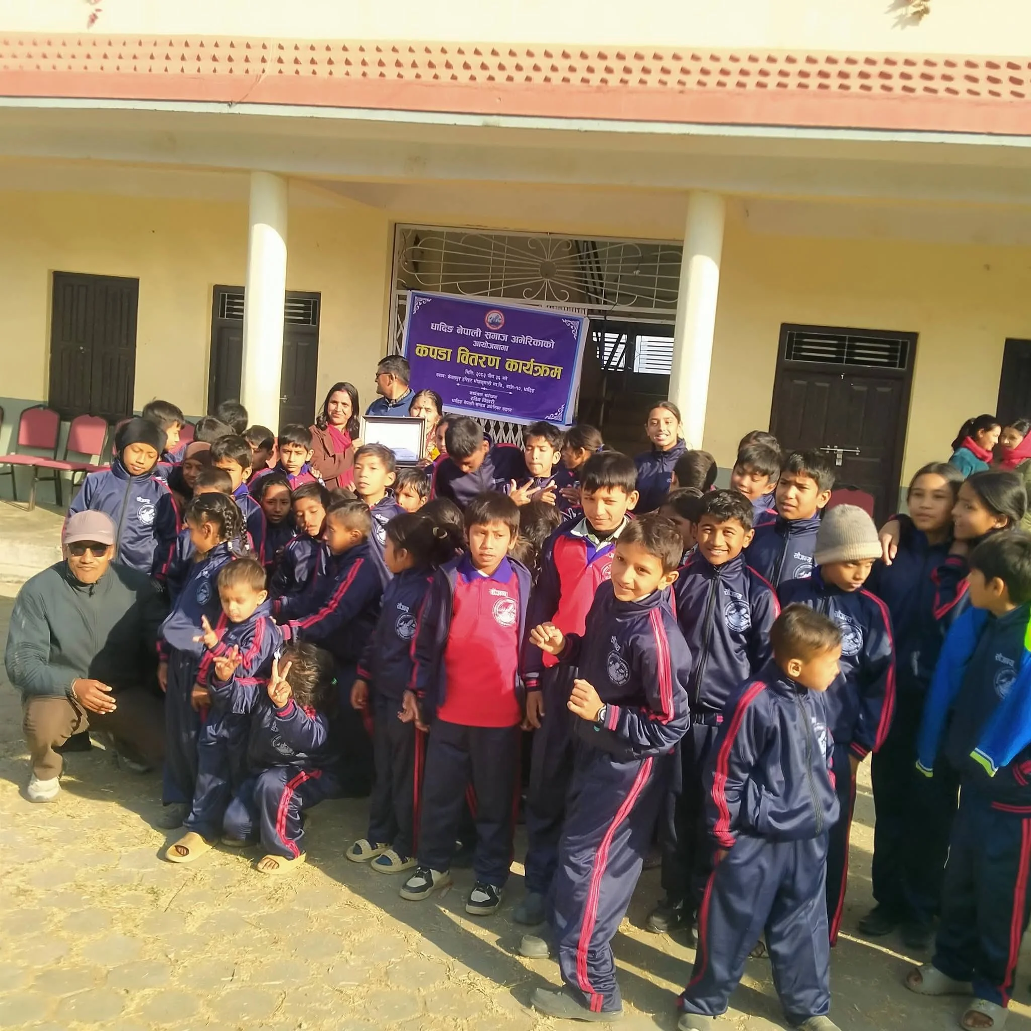 धादिङ नेपाली समाज अमेरिकाको सहयोगमा केवलपुर हरिहर भोजकुमारी माविमा कपडा वितरण