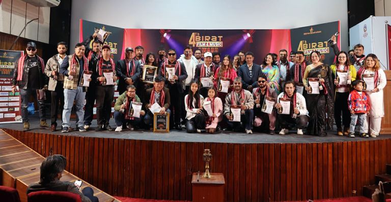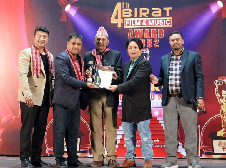 काठमाडौँ। नेपाली गीत–संगीत तथा चलचित्र क्षेत्रका स्रष्टालाई अवार्ड र सम्मान प्रदान गर्ने उद्देश्यले आयोजना हुँदै आएको ‘विराट फिल्म एन्ड म्युजिक अवार्ड’को चौथो संस्करण चलचित्र विकास बोर्डको हलमा भब्य र सभ्य रुपमा सम्पन्न भएको छ। संस्कृति, पर्यटन तथा नागरिक उड्डयन मन्त्री माननीय अनिलकुमार सिन्हाको प्रमुख आतिथ्यता तथा चलचित्र विकास बोर्डका अध्यक्ष दिनेश डिसीको विशेष आतिथ्यतामा सम्पन्न ‘चौथो विराट फिल्म एन्ड म्युजिक अवार्ड–२०८२’ मा फिल्म र गीत संगीतका गरेर ३५ वटा विधामा अवार्ड प्रदान गरियो ।